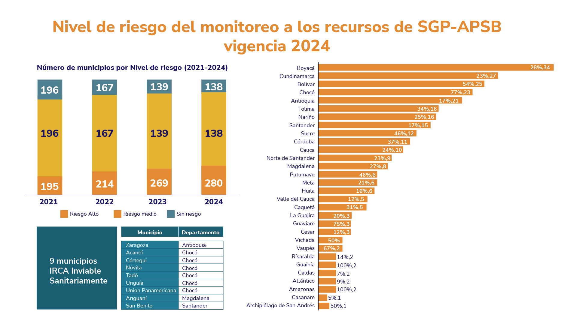 Con el objetivo de identificar preliminarmente acciones u omisiones por parte de las entidades territoriales que puedan poner en riesgo la adecuada utilización de los recursos del SGP-APSB, este Ministerio realiza dos informes monitoreo preventivo a partir del cálculo de los indicadores específicos de orden presupuestal, administrativo y sectorial previstos en la Resolución MVCT 1010 de 2021, con base en la información reportada en el FUT y CUIPO, los cuales se generan en las siguientes fechas: