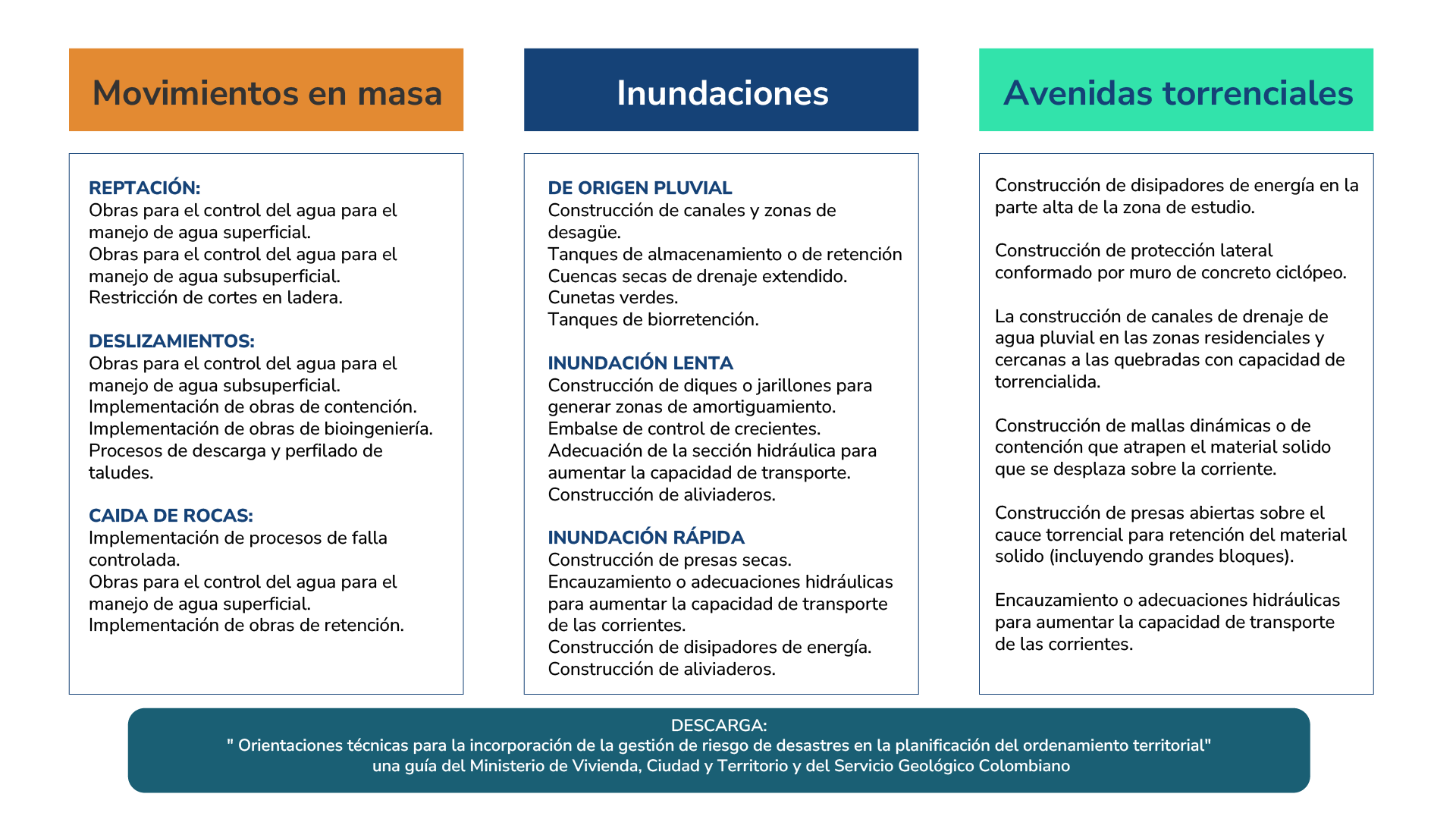 Según el Decreto 1077 de 2015, las escalas detalladas para la evaluación y zonificación de movimientos en masa e inundaciones son las siguientes: