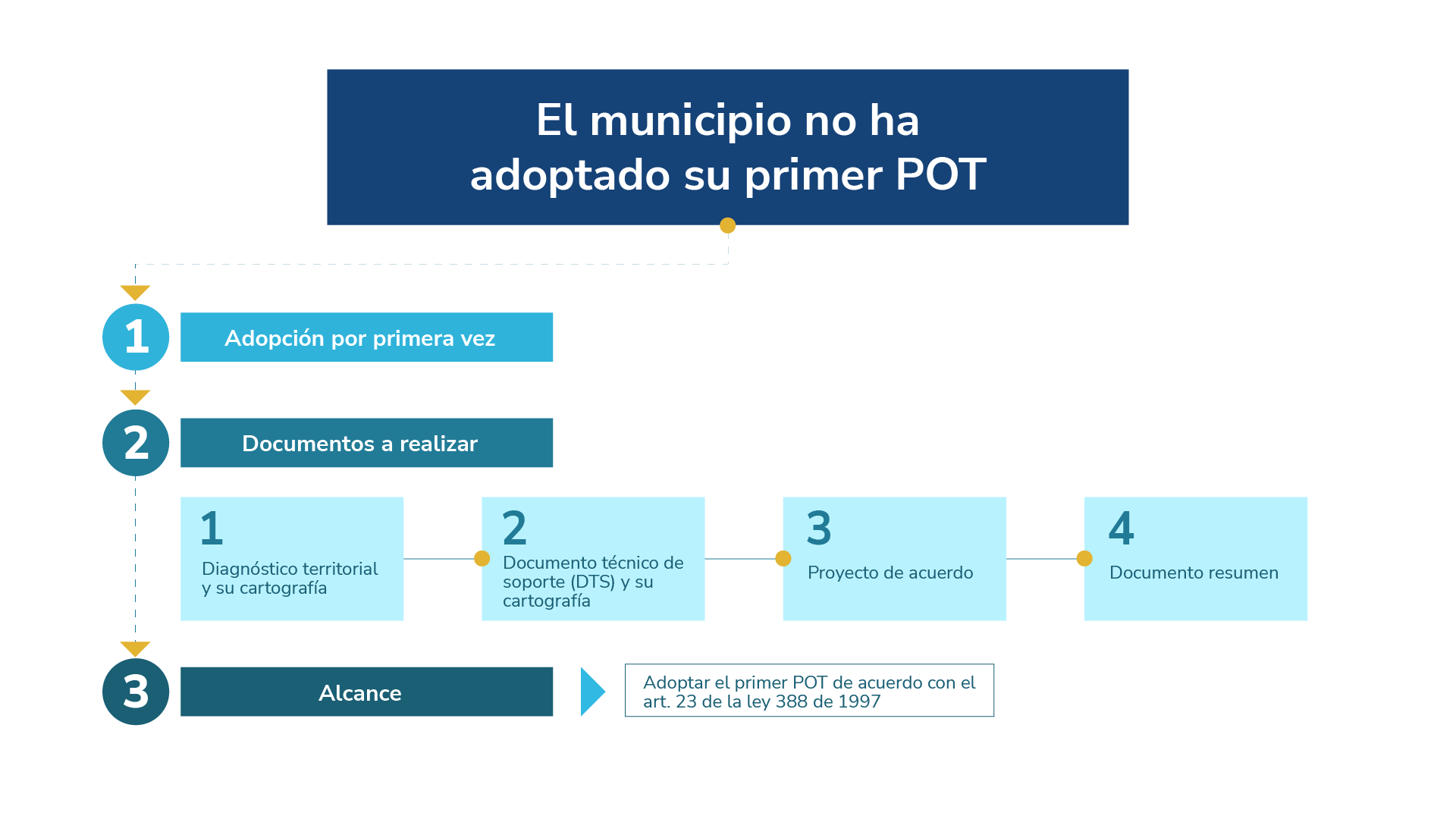 El POT es un instrumento técnico y normativo de planeación y gestión del territorio; conformado por un conjunto de acciones (políticas, normas, programas y proyectos), que orientan el desarrollo del territorio municipal en el corto, mediano y largo plazo, regulando la utilización, ocupación y transformación del territorio municipal. Un POT es en esencia, el pacto social de una población con su territorio. Su formulación, revisión e implementación está relacionado con el proceso de planificación del territorio: