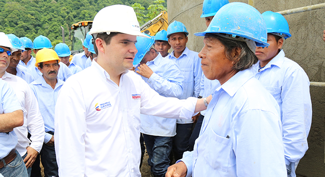 “Estamos muy contentos en el Chocó, porque se está demostrando que poblaciones que nunca habían tenido agua potable ahora la van a tener, y a través del agua potable vamos a superar la pobreza” dijo el Ministro Henao durante su paso por las poblaciones chocoanas.
