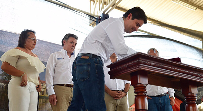Durante la ruta de agua que realizaron hoy el Presidente Santos y el Ministro Henao Cardona en Bolívar se entregaron y firmaron actas de inicio de obras de acueductos y alcantarillados por más de 64 mil millones de pesos.