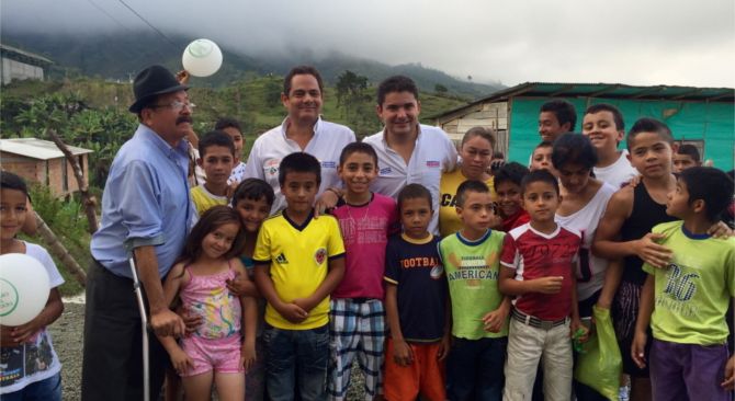 Vicepresidente Germán Vargas Lleras y Ministro Luis Felipe Henao Cardona en el municipio de Argelia, Antioquia, hasta donde llegaron hoy para entregar 82 viviendas gratis. Foto: Rosmary Castaño. Vicepresidencia.