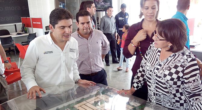 Ministro Luis Felipe Henao Cardona, revisa la maqueta de la urbanización Cerezos y Tulipanes de la Italia del programa de vivienda para ahorradores, Vipa en Palmira. Foto: Rómulo Angarita. MVCT.