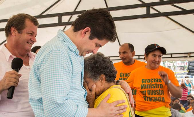 Escenas como estas las vive el Ministro de Vivienda, Luis Felipe Henao Cardona, cada semana, recorriendo el país con la entrega y sorteo de viviendas gratis para las familias más necesitadas de Colombia. Foto MVCT