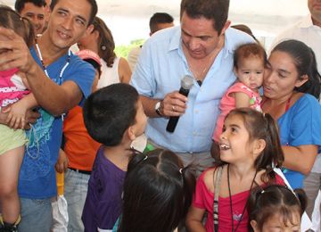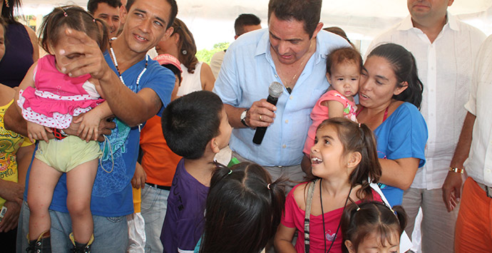 El Ministro de Vivienda, Germán Vargas Lleras, compartió con los 6 niños que conforman esta humilde familia, que se benefició el día de hoy con el programa de las 100 mil viviendas gratis. Fotografía Gerardo Aristizábal MVCT.