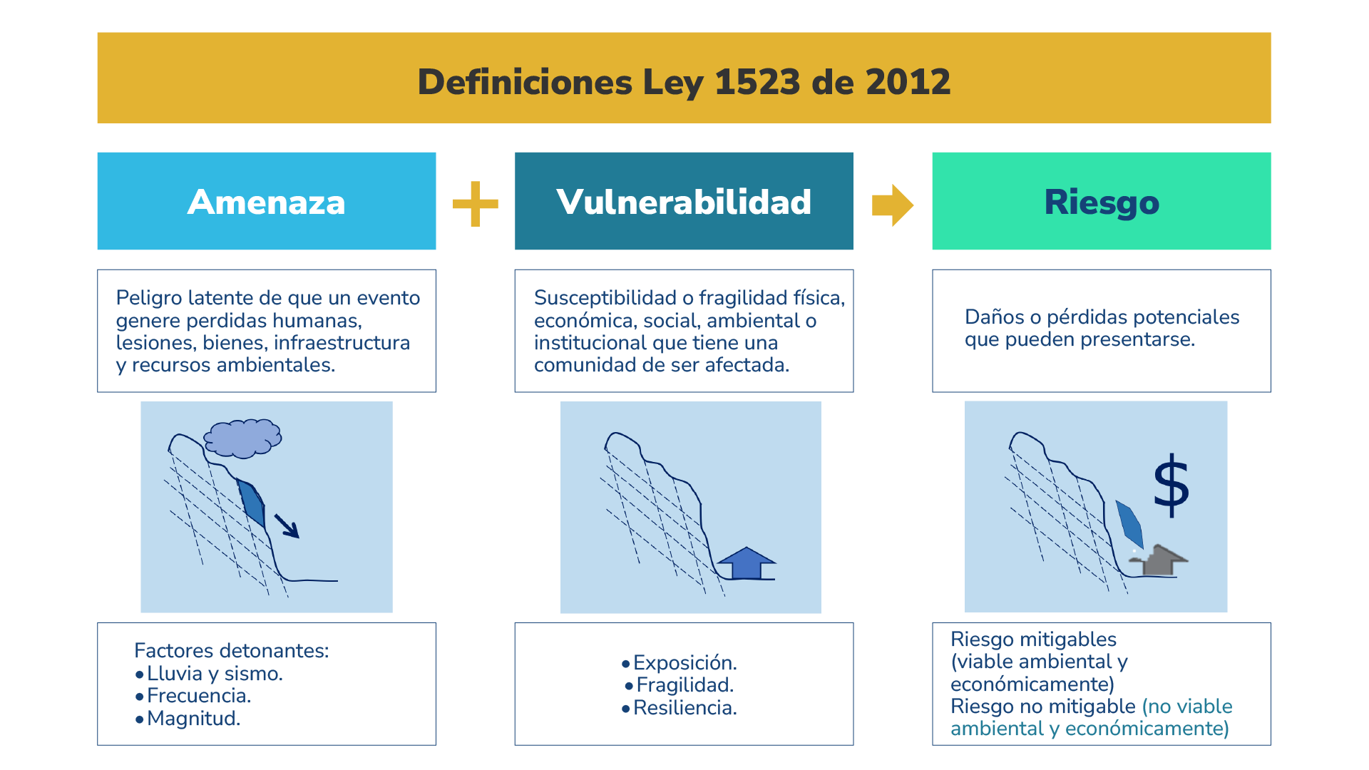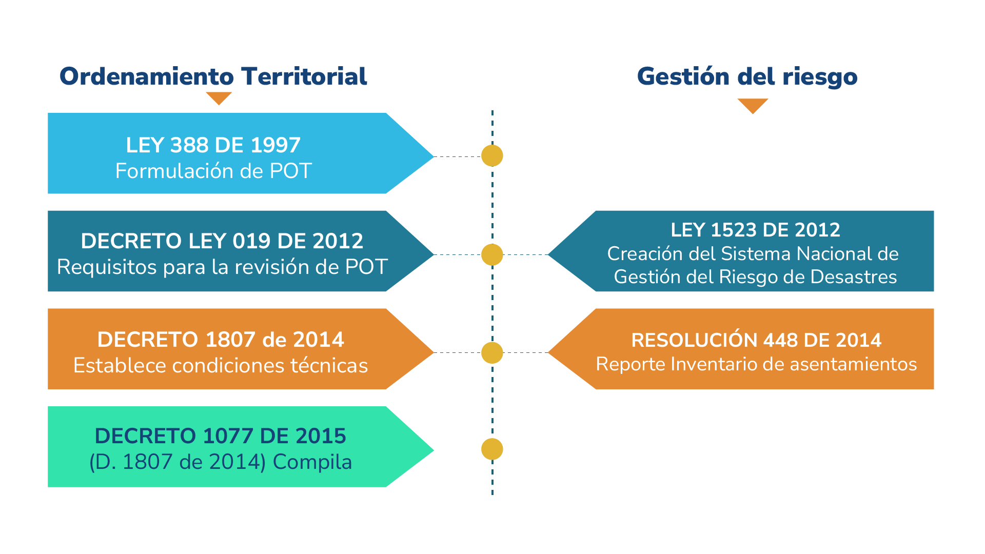 La gestión de riesgo de desastres es un proceso dinámico y permanente orientado a definir, ejecutar y evaluar acciones para avanzar en el conocimiento, la reducción del riesgo y el manejo de desastres. En este orden de ideas, la Ley 388 de 1997 reconoce la prevención de amenazas y riesgos como un determinante para el ordenamiento del territorio, estableciendo los alcances jurídicos y técnicos para su incorporación en las decisiones que se planteen en los Planes de Ordenamiento Territorial, por tanto, su inclusión es obligatoria e inaplazable y debe ser verificada por la autoridad ambiental en el trámite de concertación de los asuntos ambientales.