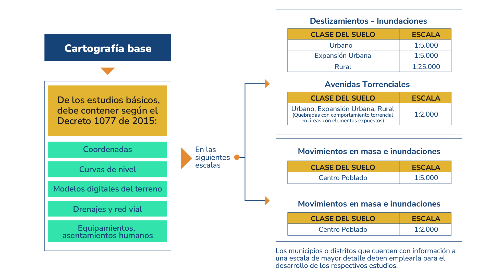 Según el Decreto 1077 de 2015, las escalas detalladas para la evaluación y zonificación de movimientos en masa e inundaciones son las siguientes: